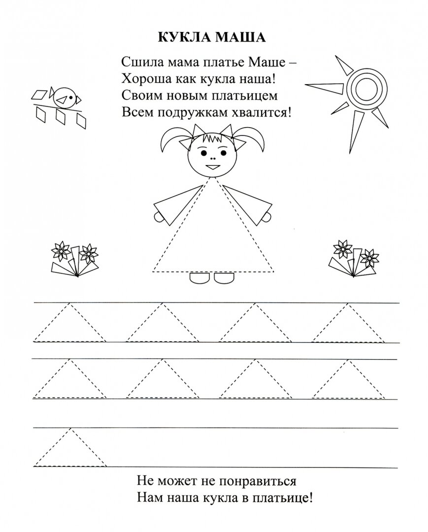 Прописи помогут малышу 2-3 лет подготовить руку к рисованию, а в дальнейшем - к письму. Задания представлены в стихотворной форме, элементы прописи даны в несложном виде - малышу достаточно просто обвести линии, изображающие те или иные геометрические фигуры, по контуру. Ребёнок постарше сможет самостоятельно раскрасить персонажей, встречающихся на страницах книги, или попытаться выполнить элемент самостоятельно, продолжив рисовать его после данного образца.