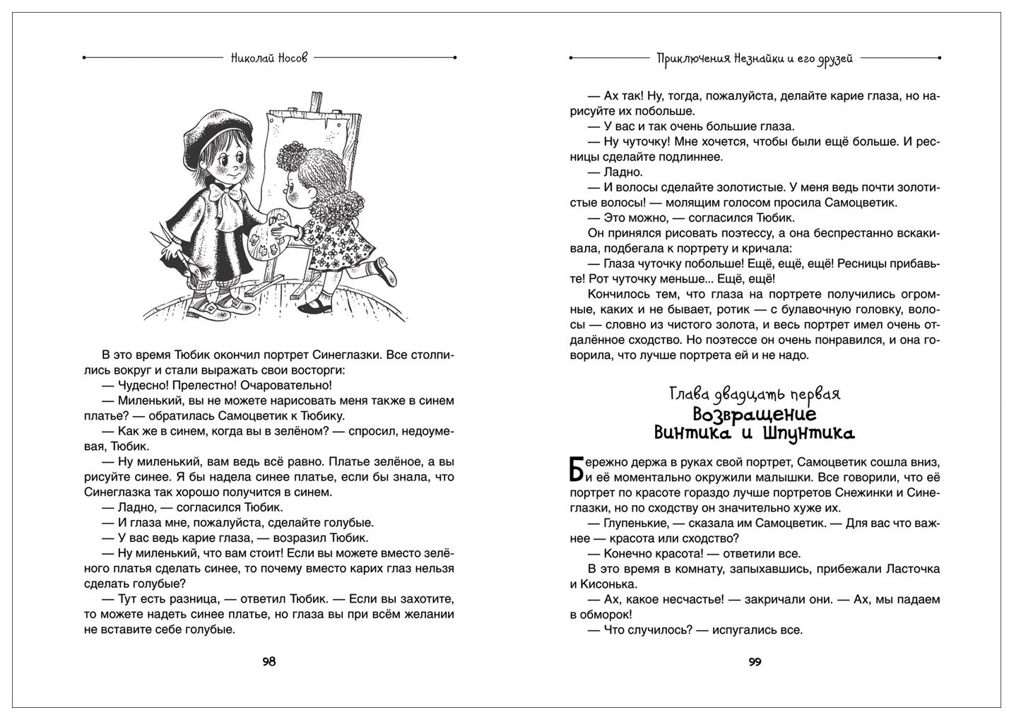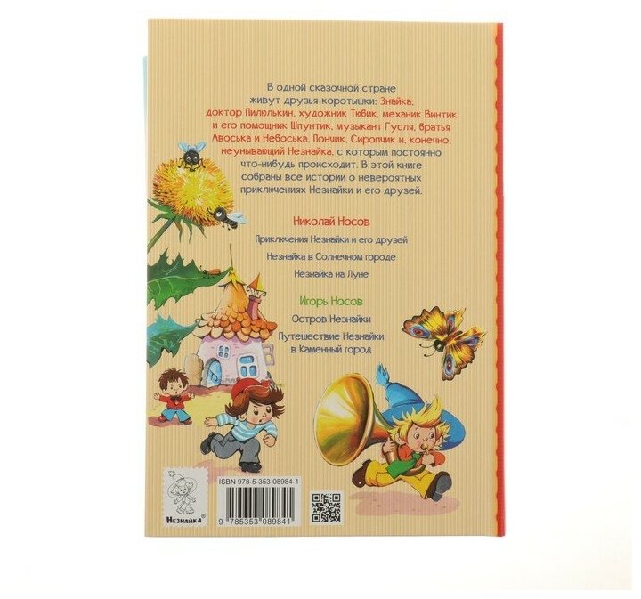 В одной сказочной стране живут друзья-коротышки ростом с небольшой огурец: Знайка, доктор Пилюлькин, художник Тюбик, механик Винтик и его помощник Шпунтик, музыкант Гусля, братья Авоська и Небоська, Пончик, Сиропчик и, конечно, неунывающий Незнайка, с которым постоянно что-нибудь происходит. В этой книге собраны три сказки Николая Носова, а также рассказы и повесть Игоря Носова о невероятных приключениях Незнайки и его друзей.