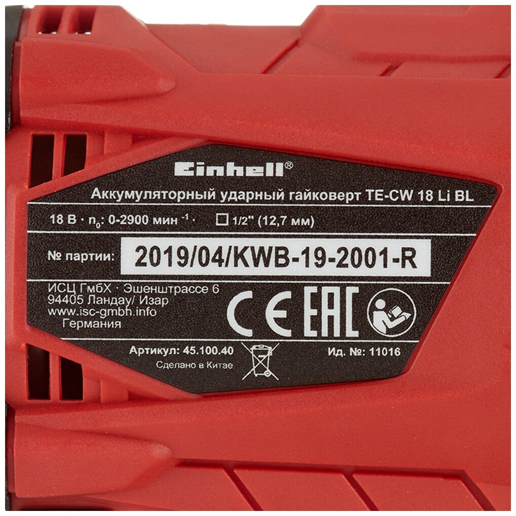 - Гайковерт ударний акумуляторний Einhell X-Change TE-CW 18 Li BL - Solo 4510040