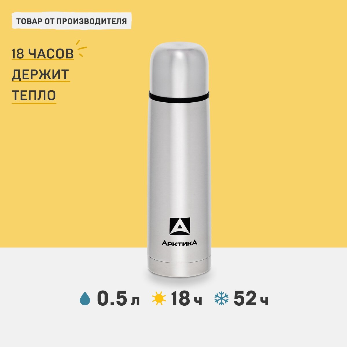 Термос Арктика представлен в классической форме и отличается хорошей герметичностью, поэтому помогает на несколько часов сохранить температуру холодных или горячих напитков, и подходит для транспортировки в рюкзаке. Резервуар оснащен практичной крышкой, ее вполне можно использовать как полноценную чашку.