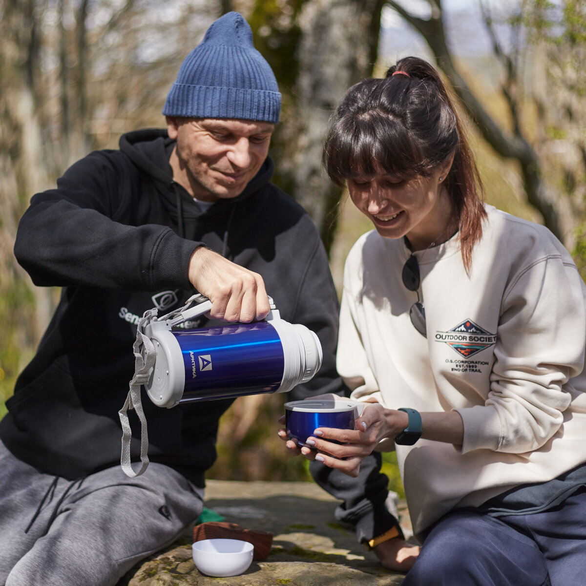 Термосы этой серии предназначены для сохранения тепла и холода напитков и еды. Благодаря широкому горлу удобно закладывать первые и вторые блюда, а также употреблять еду из термоса, не перекладывая в отдельную емкость. А двойная пробка с каналами для налива жидкости в полуоткрытом состоянии позволяет использовать этот же термос для хранения чая или кофе. В комплекте дополнительная чашка, и съемный ремешок для переноски термоса на плече.