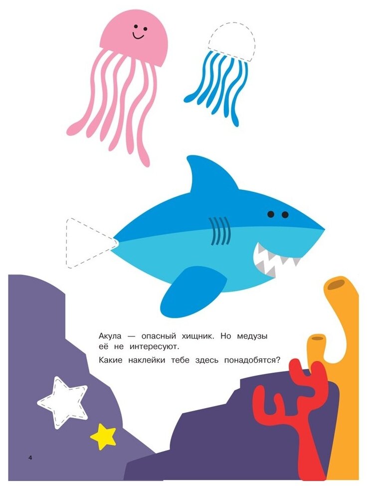 Игры с наклейками и раскраски по образцу – отличный способ занять ребенка, научить различать цвета и формы и подружить с книгами. Все задания наглядны и понятны, и малыш сможет выполнить их сам, с минимальной помощью взрослых. Ребенок выбирает подходящую геометрическую наклейку и дополняет цветную картинку по образцу. А черно-белую – раскрашивает, используя цветную картинку как подсказку. Наклейки с картинками можно использовать для украшения. Эта увлекательная игра тренирует мелкую моторику, развивает память и внимание к деталям, учит действовать по образцу. С книгами этой серии ребенок проведет время не только весело, но и с пользой!