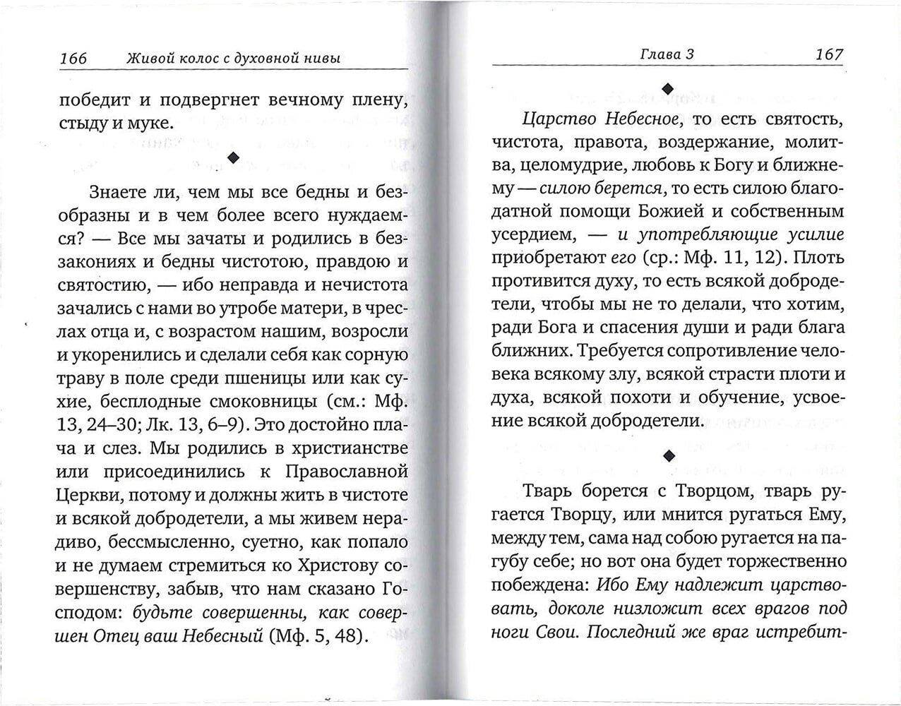 В предлагаемой читателю книге содержатся выписки из последнего дневника святого праведного Иоанна Кронштадтского за 1907-1908 годы. В этом сборнике молитвенно-вдохновенных мыслей Кронштадтского пастыря, им самим озаглавленном "Живой колос", говорится "о вере и Церкви Православной, об отношении современных христиан к вере и Церкви", изображается "путь христианина от земли на небо, путь освобождения от греха и восхождения к Богу через исполнение заповедей Христа". В последней главе содержатся мысли, в которых святой праведный Иоанн Кронштадтский говорит "о своем душевном настроении, о борьбе с врагом спасения, о стремлении к Богу..."