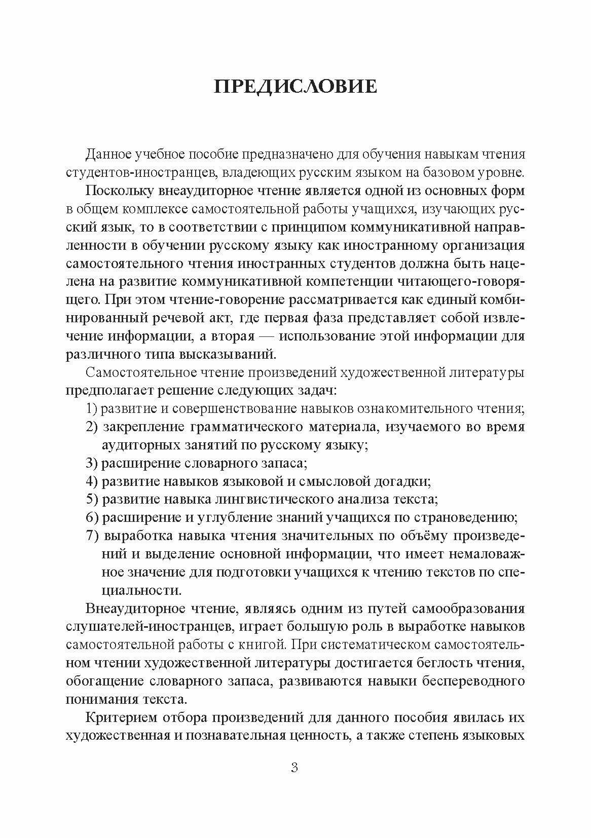 В книге представлены разные по тематике и жанру произведения русской классической литературы. К каждому тексту разработаны лексико-грамматические упражнения, способствующие совершенствованию языковой компетенции, и задания, направленные на развитие речевых навыков. Тексты подобраны с учётом возможности их обсуждения в аудитории, что будет способствовать развитию самостоятельной устной речи студентов. Пособие рассчитано как на работу под руководством преподавателя, так и на самостоятельную работу.