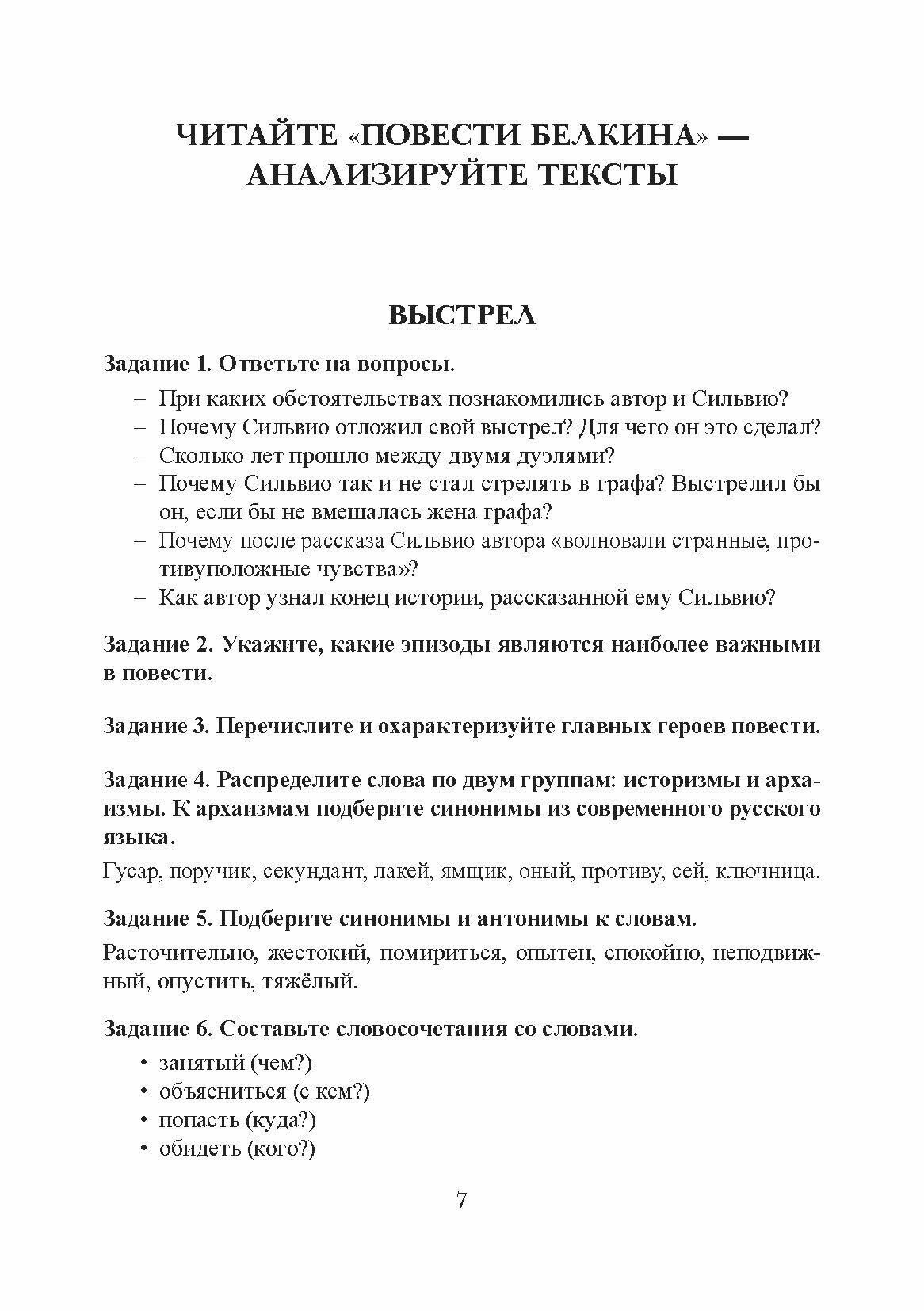 Начинается пособие Пушкиным и заканчивается Некрасовым. Так как в предисловии указано, что пособие для внеурочного чтения, то такой объём достаточен, хотя задания рассчитаны явно на филологический уклон. Как минимум для гуманитарного направления. Если говорить об иностранных учащихся, то задания не подойдут для инженеров и медиков. Хотя сами произведения выбраны очень хорошо, многие из них действительно могут спродуцировать диалог и дискуссию.