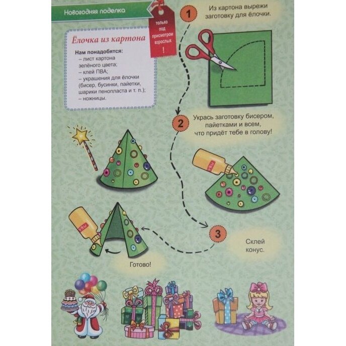 Внутри этого волшебного конверта малыш найдёт всё необходимое для подготовки к празднику. Его ждут весёлые раскраски с заданиями, рецепты, поделки и бланк для письма Деду Морозу! Конверт поможет сделать праздник по-настоящему сказочным