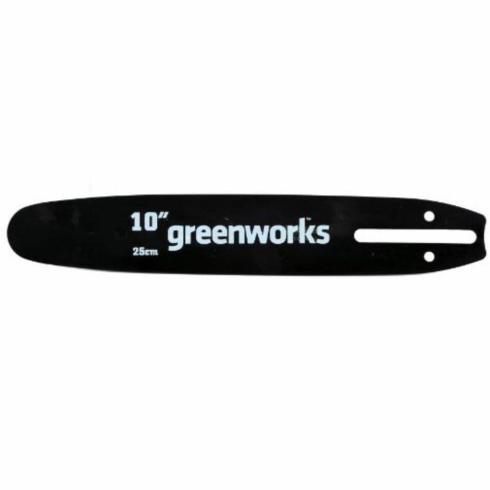 Полотно для электропилы 25 см GREENWORKS - используется с аккумуляторной пилой Greenworks при проведении несложных работ по распилу древесины. Шина выполняет роль остова для цепи и является ее направляющей. Материал шины: кремнистая сталь.