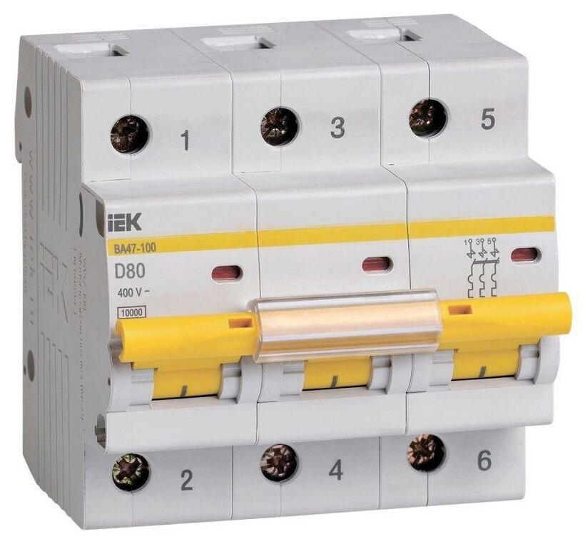 IEK ВА47-100 Автомат 3Р 10А (D) 10kA Автоматический выключатель 3P 10A D 10kA IEK ВА47-100 предназначен для защиты распределительных и групповых цепей, имеющих активную и индуктивную нагрузки. Рекомендуются к применению во вводно-распределительных устройствах бытовых и промышленных электроустановок. Насечки на контактных зажимах снижают тепловые потери и увеличивают механическую устойчивость соединения. Эргономичный дизайн рукоятки включения/выключения облегчает процесс коммутации.
