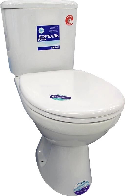Унитаз компакт с косым выпуском, двойной смыв, антивсплеск, арматурой Oliviera и сиденьем с плавным опусканием дюропласт. Унитаз компакт с косым выпуском, двойной смыв, антивсплеск, арматурой Oliviera и сиденьем с плавным опусканием дюропласт. У унитазов Santek (Сантек) безупречный белый цвет. Арматура для набора и слива воды производится в Португалии. Все унитазы Santek (Сантек) комплектуются сиденьями из дюропласта с антибактериальным покрытием,производства Германия.