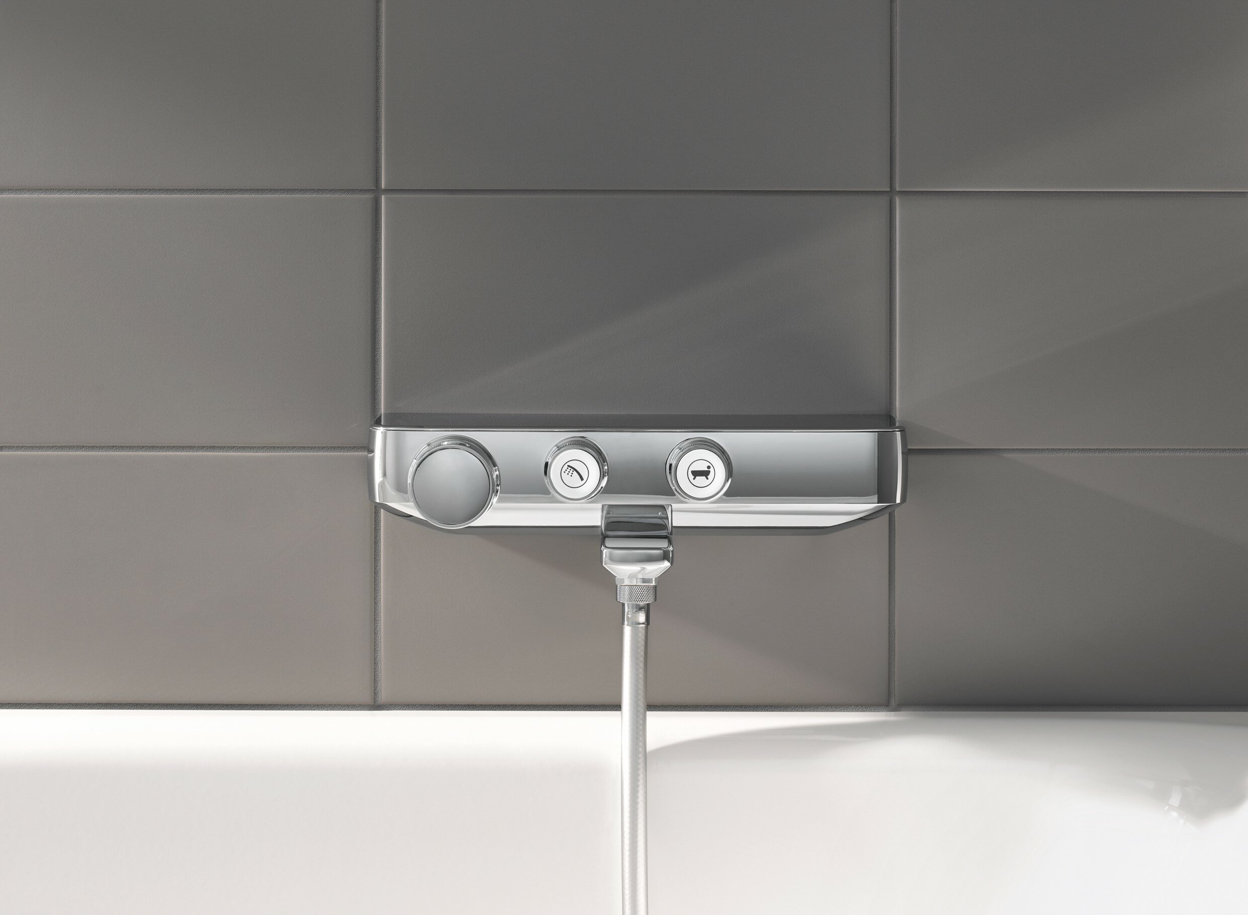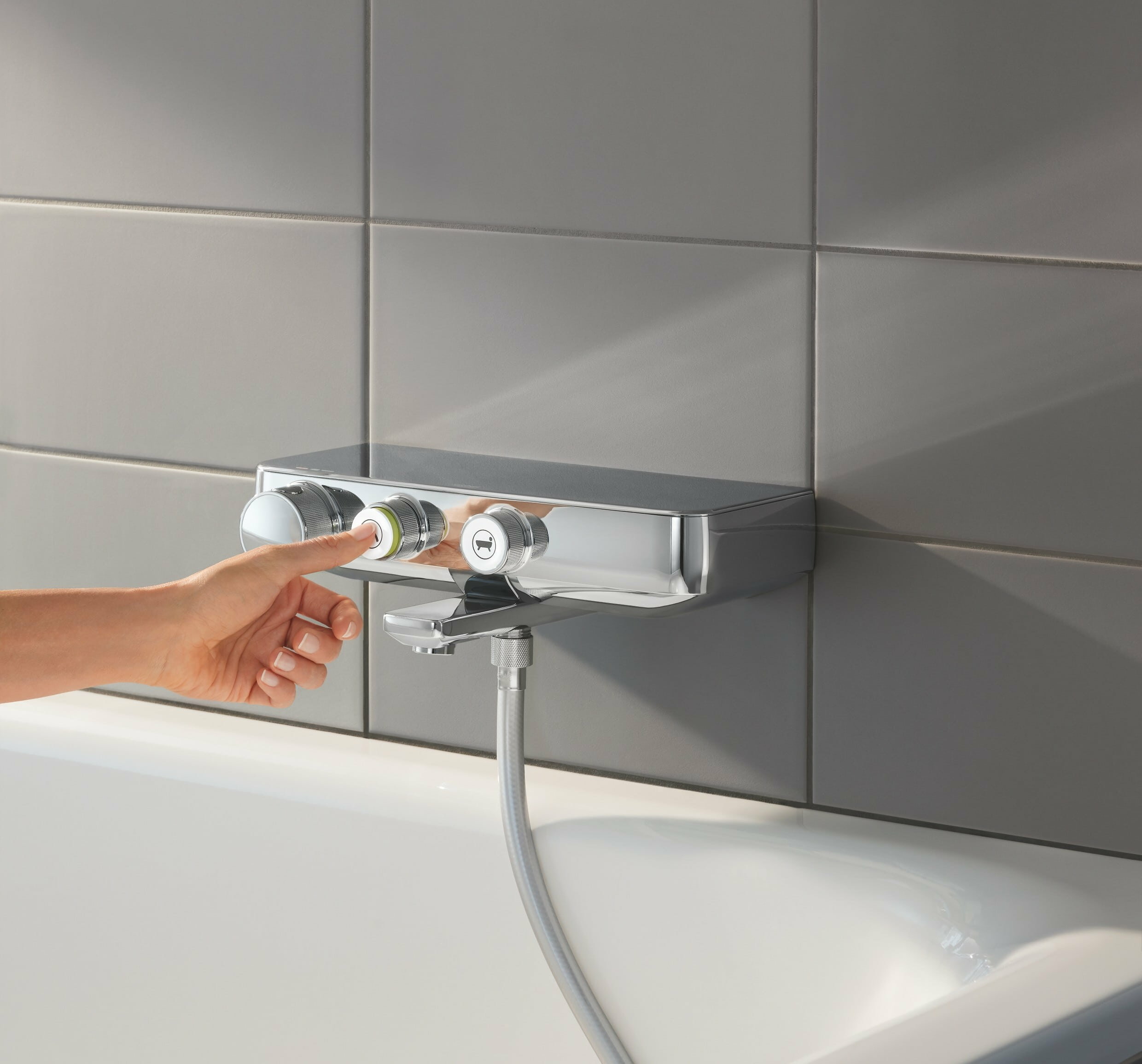 | Описание продукта | Без труда переключайтесь между изливом на ванну и душем благодаря термостату для ванны Grohtherm SmartControl, который был создан, чтобы предложить вам точное и простое управление.Инновационная технология GROHE SmartControl позволяет регулировать напор воды с помощью простого нажатия и поворота кнопки. Технология EcoJoy позволяет сократить расход воды. Благодаря технологии GROHE TurboStat вы сможете насладиться постоянной температурой воды на протяжении всего принятия душа. Кнопка GROHE SafeStop ограничивает температуру до 38˚C, так что вам не придется волноваться о том, что температура слишком высока. Но если вам захочется, вы сможете выбрать температуру в 43°C с помощью функции GROHE SafeStop Plus. Для дополнительной безопасности термостат оснащен технологией GROHE CoolTouch, которая гарантирует, что корпус термостата не будет слишком горячим.Полочка EasyReach добавляет практичности, ведь шампунь или мыло всегда будут у вас под рукой. Ослепительное хромовое покрытие GROHE StarLight сохранит свой безупречный внешний вид на долгие годы. Grohtherm SmartControl - насладитесь интуитивным управлением и комфортом роскошного душа |