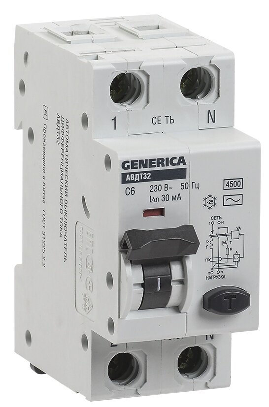 Автоматический выключатель дифференциального тока GENERICA АВДТ 32 C16 - это надежное и качественное устройство, предназначенное для защиты электрических сетей от перегрузок и коротких замыканий.Устройство имеет двухполюсную конструкцию, что обеспечивает более эффективную защиту от токов утечки. Номинальное напряжение составляет 220/230 В, а номинальный ток - 16 А. Отключающая способность составляет 4.5 кА, что гарантирует быстрое и эффективное отключение при возникновении аварийной ситуации.Автоматический выключатель дифференциального тока имеет степень защиты IP20, что обеспечивает его защиту от попадания твердых предметов диаметром более 12 мм и от проникновения воды, падающей в виде дождя под углом более 60 градусов.Устройство обладает типом расцепления C, что означает, что оно срабатывает при превышении тока в 5-10 раз от номинального значения. Ток утечки составляет 30 мА, что соответствует классу АС.Вес нетто составляет 0.217 кг, а вес с упаковкой - 0.20 кг. Габариты устройства: высота - 84 мм, глубина - 71 мм, ширина - 36 мм. Габариты упаковки: высота - 77 мм, длина - 88 мм, ширина - 39 мм.Выбирая автоматический выключатель дифференциального тока GENERICA АВДТ 32 C16 , вы получаете надежное и качественное устройство для защиты вашей электрической сети от перегрузок и коротких замыканий.