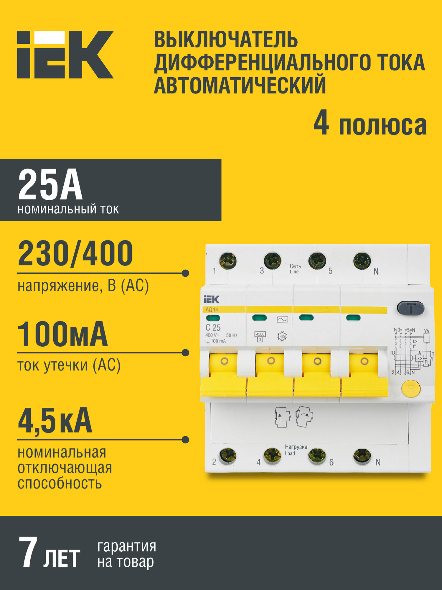 | Номинальный ток | 25 А |