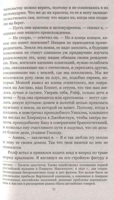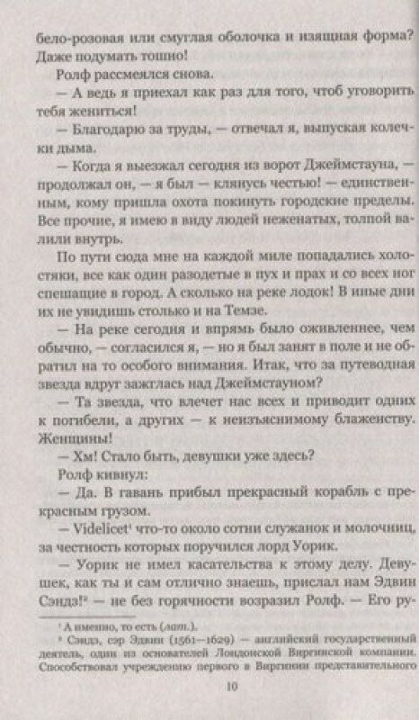 Первые колонисты в американской Виргинии в XVII веке. Главная героиня - юная аристократка бежит из Англии, где ее принуждали выйти замуж без любви. Ее руку король Иаков I обещал своему фавориту, лорду Карнэлу, который спешит на поиски беглянки. В диких лесах Нового Света героиню ждут опасные приключения и, конечно, любовь. Многие персонажи романа являются реальными историческими лицами - от первых поселенцев до Покахонтас, дочери индейского вождя, спасшей жизнь основателю Виргинии Джону Смиту.