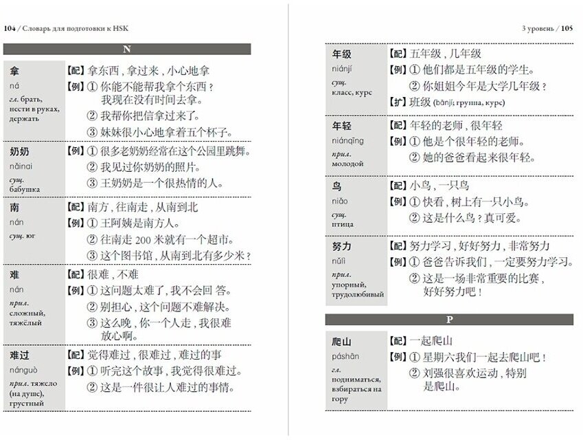 Покупаю словарь из этой серии не первый раз - до этого брала 5 уровень. По сравнению с пятым этот словарик уже потолще, посолиднее :) По содержанию всё чудесно: дается слово, к нему пиньинь, перевод, а кроме того еще и примеры употребления этого слова в предложении (жирный плюс за это), синонимы, антонимы - благодаря чему понимать и запоминать гораздо проще.