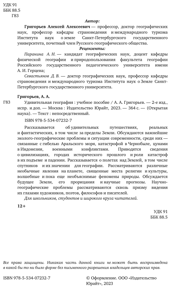 Удивительная география. Учебное пособие (Григорьев Алексей Алексеевич); Энас-книга, 2019