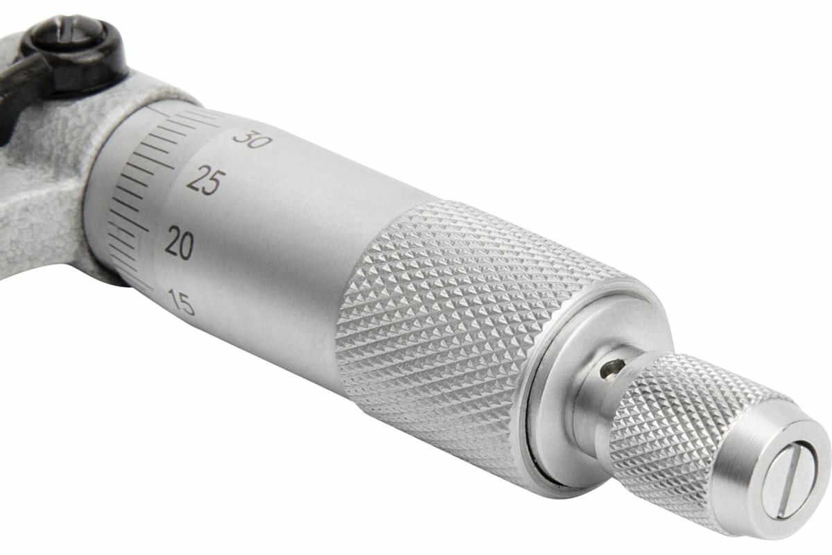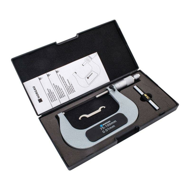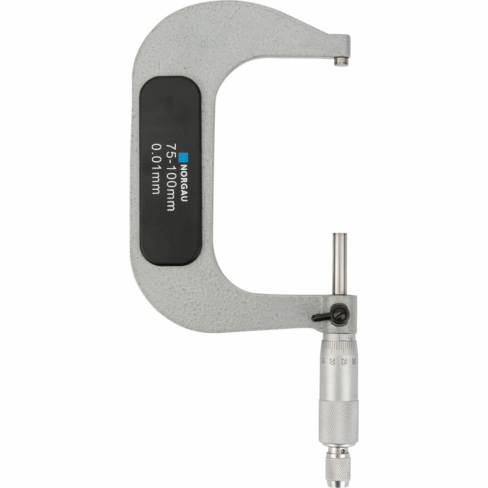 Микрометр со скобой NM Надежное и простое исполнение для цехового использования Шкала: стебель и барабан с матовым хромированием Измерительный шпиндель O6,35 мм, перемещение шпинделя 0,5мм/оборот С зажимным винтом и трещоткой Измерительные поверхности твердосплавные, шлифованные, тонко притерты Скоба покрыта эмалью Комплект поставки: В пластиковом футляре, ключ, установочная мера (для моделей с диапазоном измерений более 25мм), руководство по эксплуатации на русском языке, паспорт. Внесен в ГосРеестр СИ Характеристики Артикул производителя Бренд NORGAU Диапазон измерений внутренних, мм - Тип измерительного инструмента Нониусный Диапазон измерений 75-100 мм Цена деления 0,01мм Вес, g 375 Mикрометры со скобой