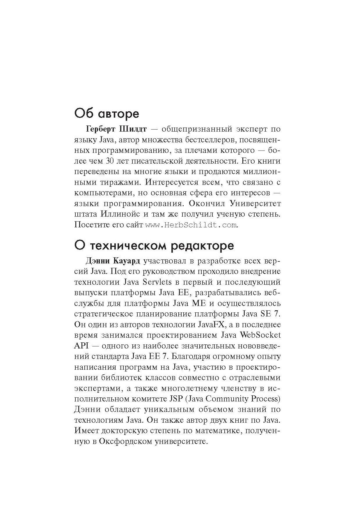 Очередное издание бестселлера, обновленное с учетом всех новинок Java Platform, Standard Edition 9 (Java SE 9), позволит читателям в кратчайшие сроки приступить к программированию на языке Java. Опытнейший автор Герберт Шилдт уже в начале книги познакомит читателей с тем, как создаются, компилируются и выполняются программы, написанные на Java. Далее обсуждаются ключевые слова, синтаксис и языковые конструкции, составляющие основу Java. Также будут рассмотрены темы повышенной сложности, включая многопоточное программирование, обобщения, лямбда-выражения, Swing, JavaFX и ключевое нововведение Java SE 9 - модули. В качестве бонуса читателей ждет знакомство с JShell - новой интерактивной оболочкой Java.
