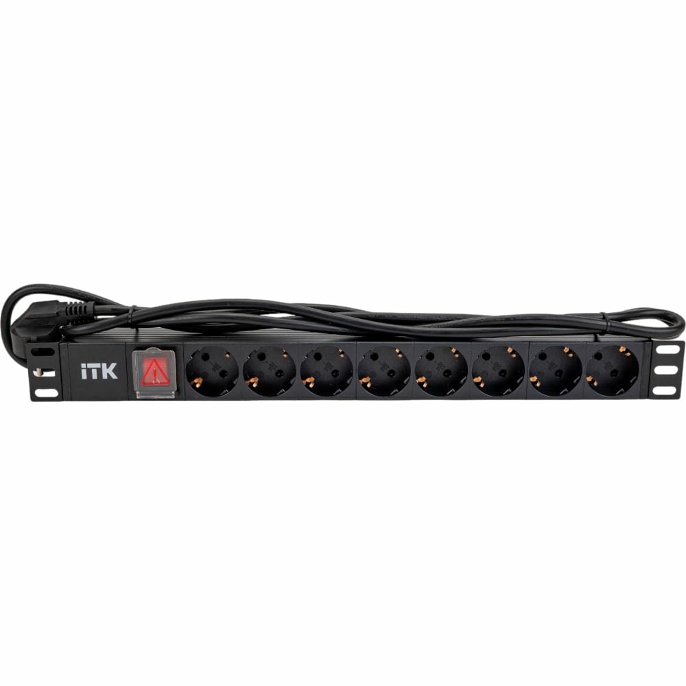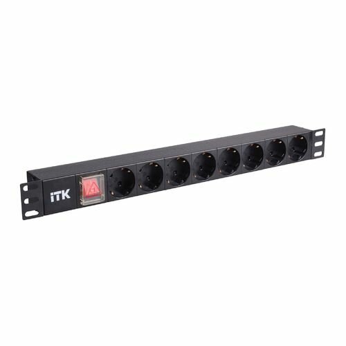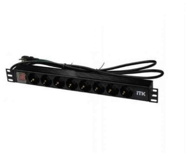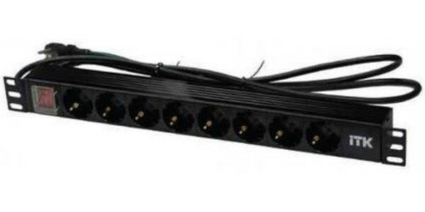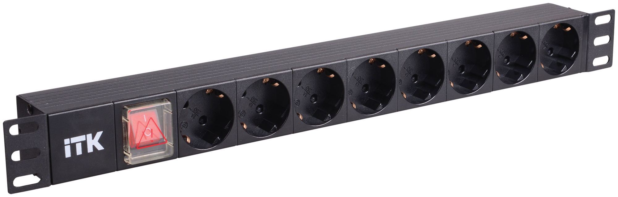 | Прочие особенности и свойства | Горизонтальные 19” PDU от ITK изготавливаются из высококачественных термостойких материалов и пластмасс, оснащаются в зависимости от модели выключателем со светоиндикацией, автоматом УЗО, кнопкой сброса при перенапряжении и соответствуют и международным стандартам качества. Горизонтальные PDU соответствуют стандарту 19” (482,6 мм) и устанавливаются с помощью кронштейнов на 19” профиль, при этом положение кронштейнов можно менять. |