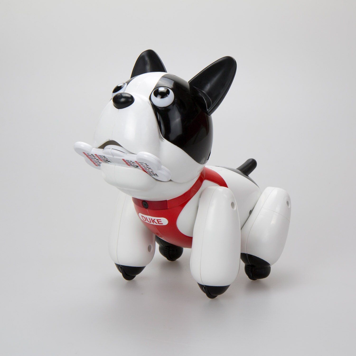 Иметь свою собственную собаку – мечта любого ребенка, поэтому уникальный французский бульдог-робот по имени Дюк – это великолепный подарок для малыша! Интерактивная игрушка имеет множество функций, которые позволяют ей быть похожей на настоящего щенка – узнает голос хозяина, выполняет команды, бегает и реагирует на поглаживание. Робот-собака умеет даже петь и танцевать! На лапах Дюка есть колесики, которые помогают ему быстро передвигаться. Робот-щенок может выполнять 12 различных команд. Все они заложены в специальную интерактивную «умную» косточку. С ее помощью можно менять кличку собаки, научить ее распознавать голос, выполнять различные команды («сидеть», «голос», «ко мне», «взять» и др.). Несложное программирование подробно описано в инструкции. Игрушка выполнена из ударопрочного пластика и металла, поэтому не боится активных действий. Для ее работы требуются 4 пальчиковые батарейки АА. Замечательная собака-робот станет настоящим другом для ребенка, мечтающего о домашнем питомце!