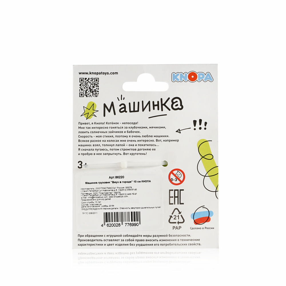 Игрушка Knopa Машинка грузовик Вжух в городе (86220)