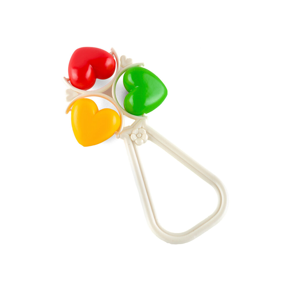 Симпатичная погремушка "Сердечки" состоит из рамки и трёх ярких сердечек. Своим звучанием погремушка привлекает внимание малыша, развивает слуховое и пространственное восприятие – учит находить источник звука, сосредотачиваться и следить за движением игрушки.