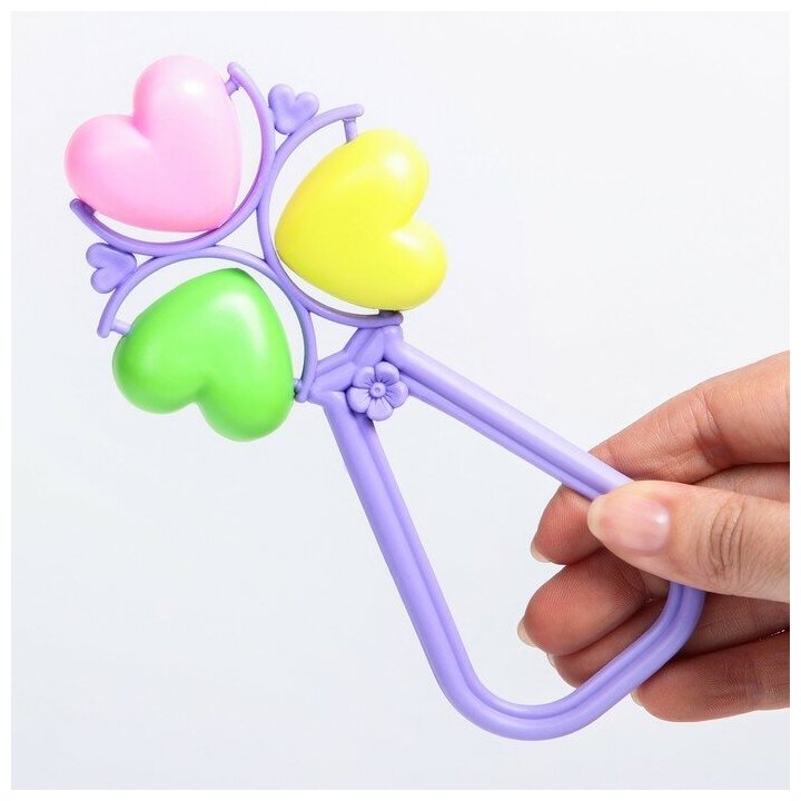 Симпатичная погремушка "Лаванда" состоит из рамки и трёх ярких сердечек. Своим звучанием погремушка привлекает внимание малыша, развивает слуховое и пространственное восприятие – учит находить источник звука, сосредотачиваться и следить за движением игрушки.