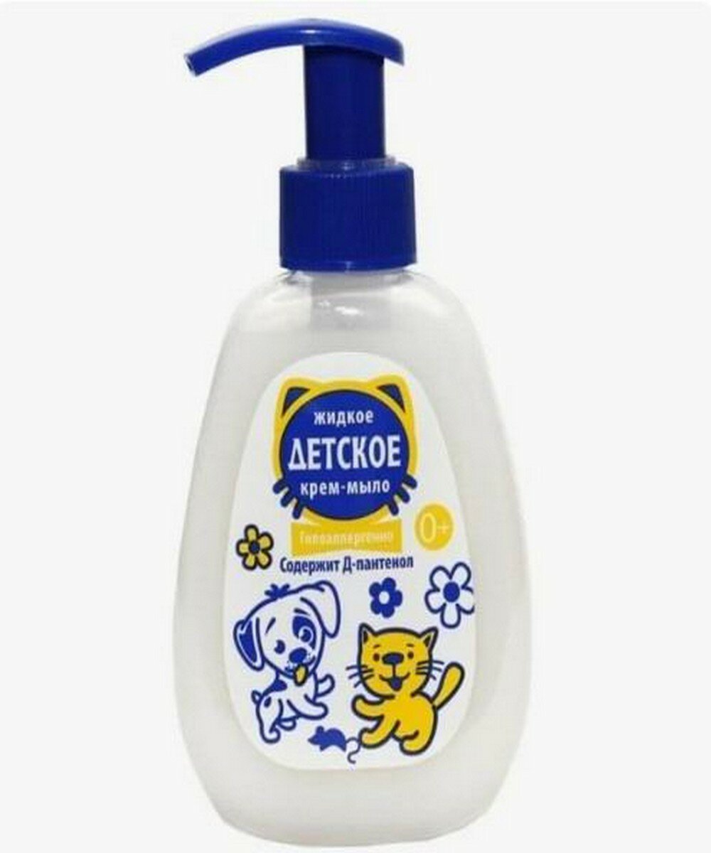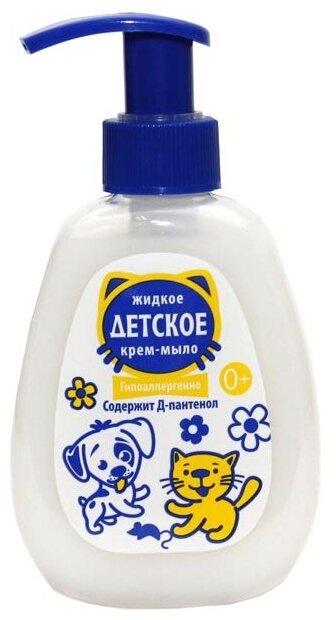 Жидкое крем-мыло ДЕТСКОЕ с Д-пантенолом. Гипоаллергенная формула с содержанием Д-пантенола и оливкового масла мягко очищает кожу малыша, помогая предотвращать шелушение и раздражение. Не сушит кожу. Не содержит красителей и консервантов.