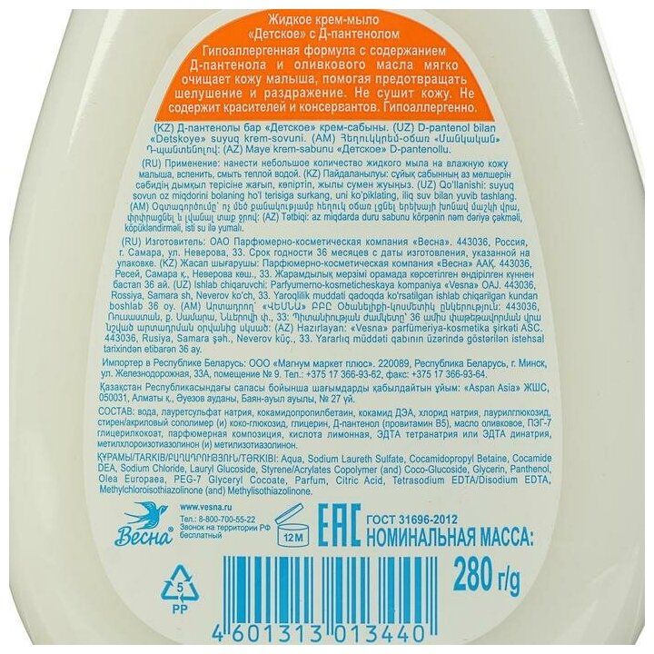 Крем-мыло Весна жидкое детское с Д-пантенолом 280 мл (5148)