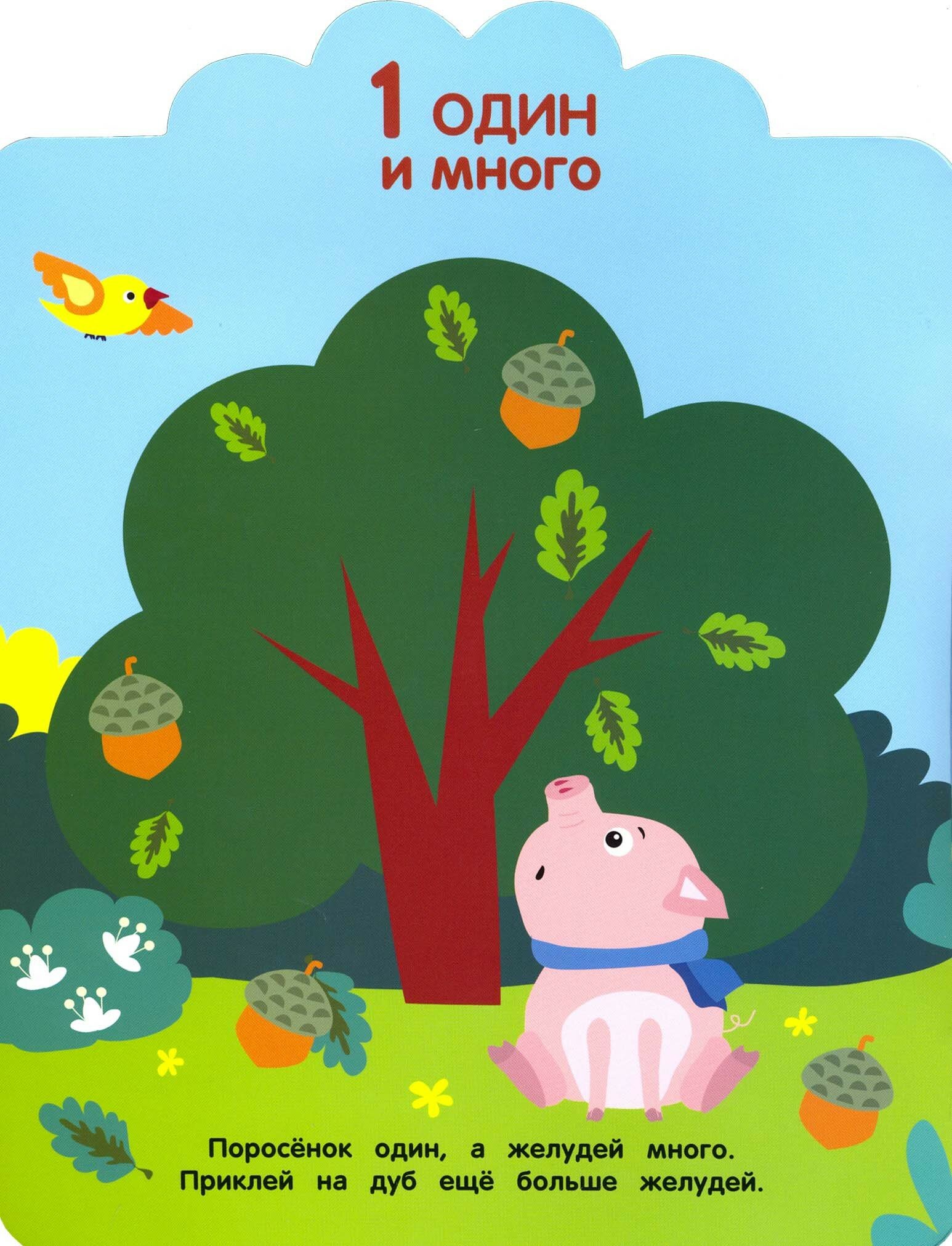 Здесь в привычном формате приклеивания рисунков на прозрачных кружках осваивается количественный счет до 5 и понятие "много".