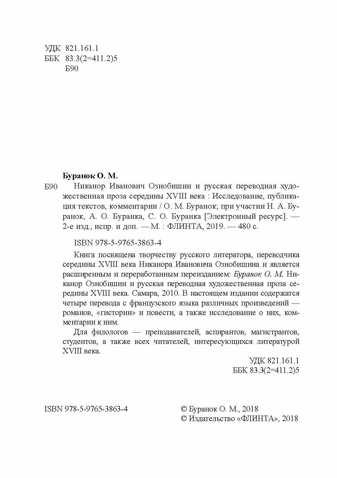 Никанор Иванович Ознобишин и русская переводная художественная проза середины XVIII века (Олег Михайлович Буранок); Флинта, 2018