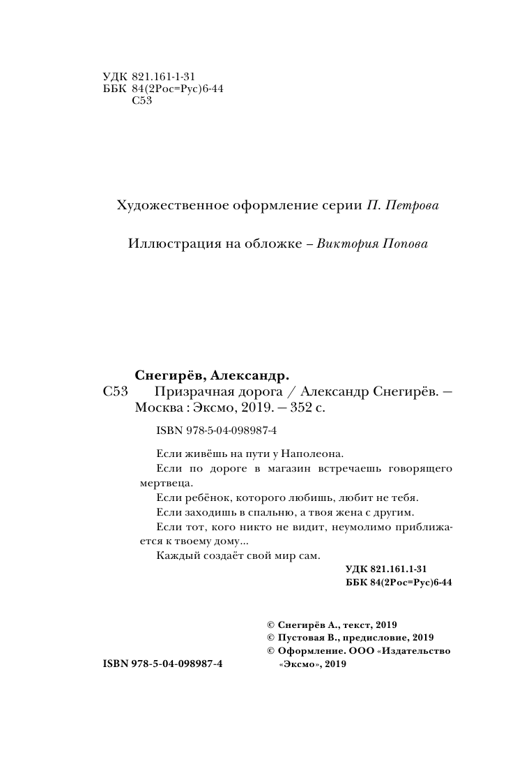 Книга: Призрачная дорога (Александр Снегирёв); Эксмо, Редакция 1, 2018