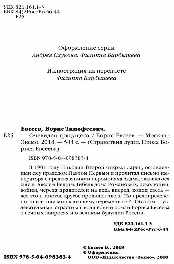 Книга: Очевидец грядущего (Евсеев Борис Тимофеевич); ООО "Издательство "Эксмо", 2018