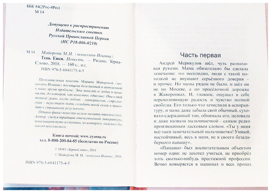 На сегодняшний день товар «Книга: Тень Евки. Повесть (Марина Майорова (монахиня Иоанна)); Издательство «Зерна», 2018» можно купить с кешбеком в 4 магазинах: ЛитРес, book24, Буквоед, Читай-город