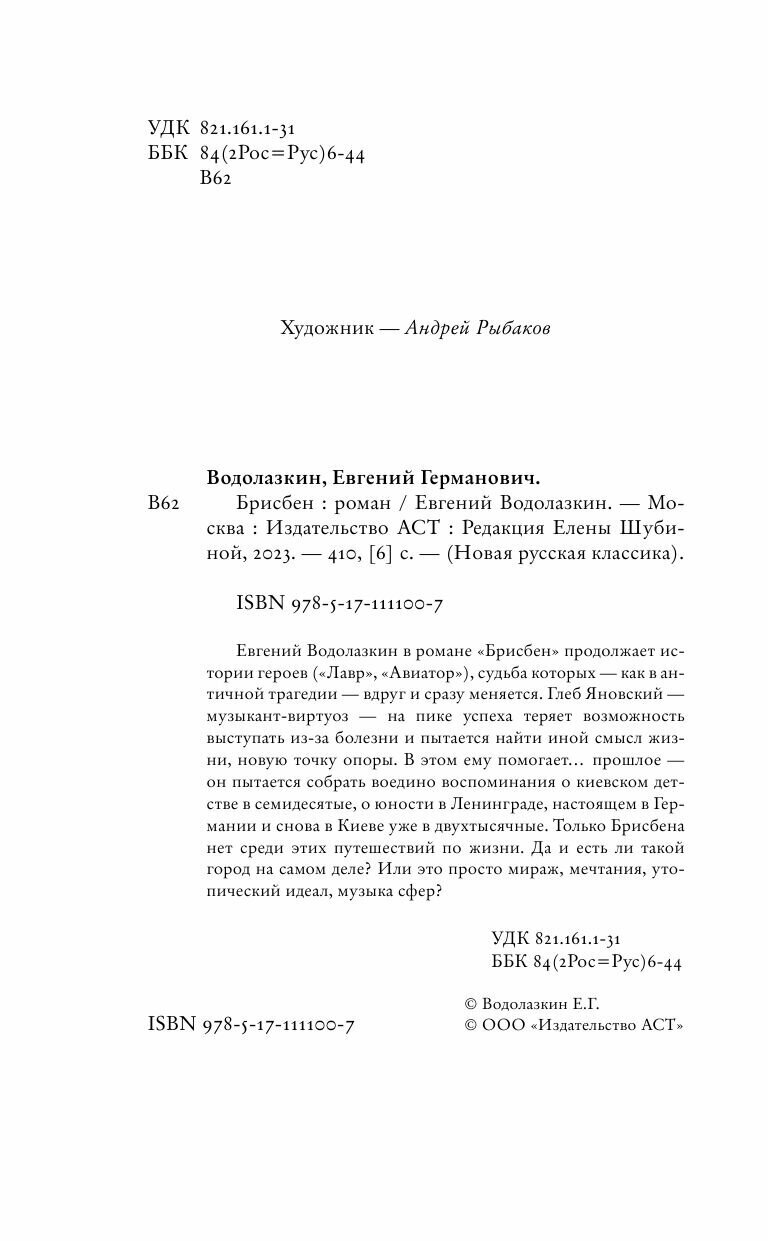 Книга: Брисбен (Евгений Водолазкин); АСТ, Редакция Елены Шубиной, 2024