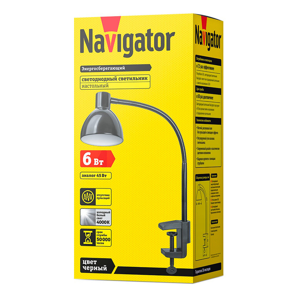 Navigator 61405 Настольный светодиодный светильник Navigator NDF-C010 обладает высоким качеством изготовления и станет идеальным энергоэффективным решением для локального освещения рабочего места. Он укомплектован матовым рассеивателем и имеет регулируемый угол наклона. Крепление светильника производится с помощью струбцины, а на проводе расположен удобный выключатель.