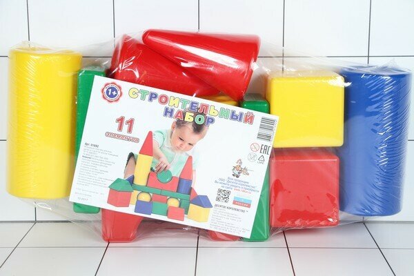 Этот строительный набор состоит из 11 элементов. Все они сделаны из разноцветной пищевой пластмассы, которая полностью безопасна для здоровья ребенка. Детали большие, легкие и полые внутри, что исключает случайное проглатывание, а играть с ними весело и удобно. Так как элементы сделаны в виде объемных геометрических фигур, ребенок сможет играючи выучить их названия и формы и построить множество мостов, стен, замков и других строений.