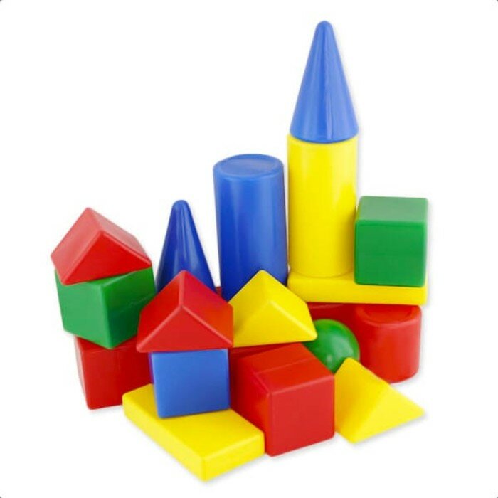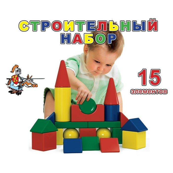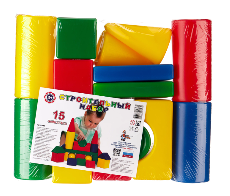 В состав представляемого строительного набора входят 15 элементов разных формы и цвета. С их помощью можно построить несложное сооружение. Все компоненты набора легкие, устойчивые и имеют закругленные края, благодаря чему игра с ними доставляет малышу только радость. Игрушка способствует улучшению координации движений и укреплению пространственного мышления.