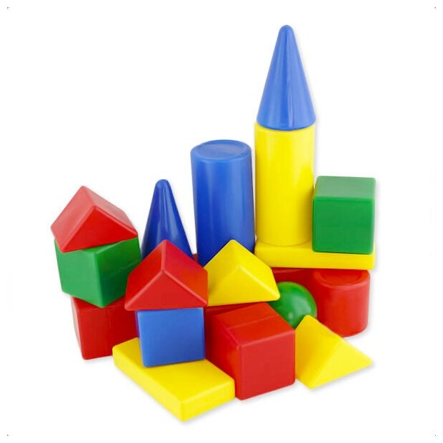 | Состав набора | 6 кубиков, 15 треугольников, 2 шара, 2 конуса, 8 прямоугольников, 12 цилиндров, 4 арки |