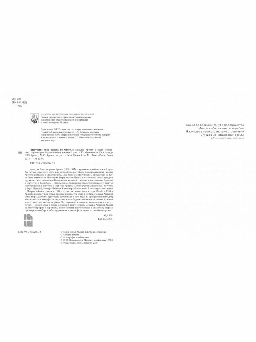 "Искусство твое никуда не уйдет…" Ариадна Арендт в кругу московских скульпторов. Воспоминания (Менчинская Н., Арендт Ю., Арендт Н., Арендт М. (сост.)); Фонд Связь Эпох, 2018
