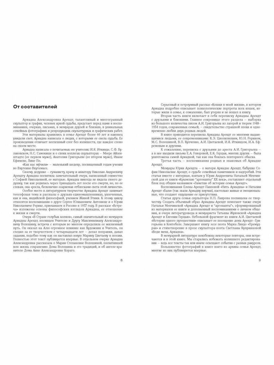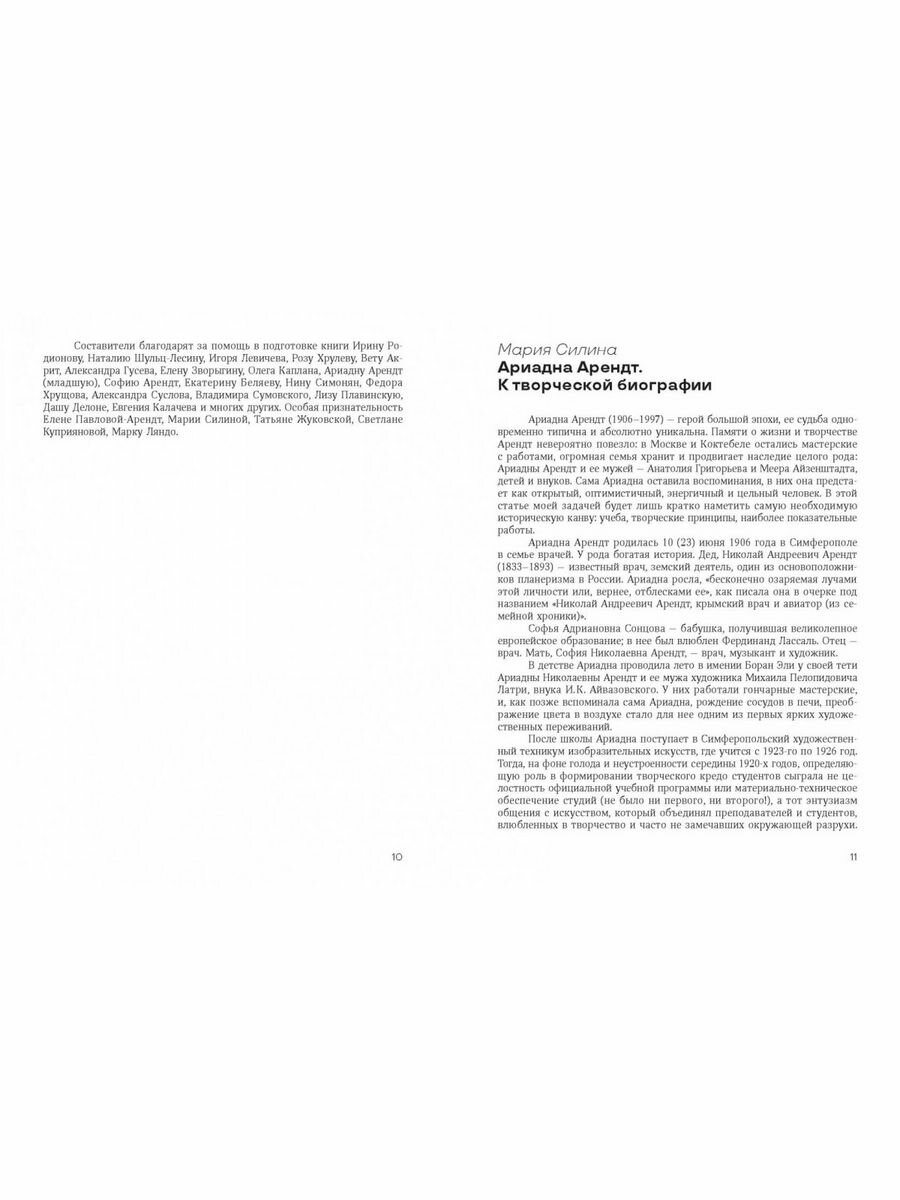 Ариадна Александровна Арендт (1906-1997) - художник яркой и сложной судьбы. Внучка известного врача и первопроходца российского воздухоплавания Николая Арендта родилась в Симферополе. Она росла в артистическом окружении: ее тетка была замужем за Михаилом Латри, внуком Ивана Айвазовского, семья Арендтов дружила с Максимилианом Волошиным, который становится наставником Ариадны в искусстве, а Коктебель - прибежищем. Выпускница Симферопольского техникума изобразительных искусств, с 1928 года Ариадна Арендт учится в московском Вхутеине у Веры Мухиной, Иосифа Чайкова, Владимира Фаворского. В институте знакомится с Меером Айзенштадтом, в 1934 году на свет появляется их сын Юрий, в 1936-м Ариадна попадает под колеса трамвая и лишается обеих ног. Второго мужа Ариадны, скульптора Анатолия Григорьева арестовали в 1948 году по сфабрикованному делу "Антисоветское теософское подполье" и освободили только после смерти Сталина. "Искусство твое никуда не уйдет. Это огромное испытание надо выдержать на отлично", - пишет мужу в лагерь Ариадна. В книге собраны мемуары Ариадны Арендт, ее автобиография и переписка, воспоминания родственников и знакомых; впервые публикуется подборка работ художницы, а также фотографии из семейного архива.