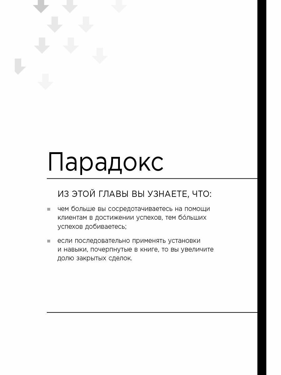 Руководствуясь принципами Стивена Кови, руководители компании FranklinCovey разработали уникальную практику «эффективные продажи», основой которой является забота об успехе клиента. Систематическое применение описанных в книге установок и навыков резко повышает способность специалистов по продажам успешно закрывать сделки, а культура получения взаимовыгодных результатов благотворно сказывается на взаимоотношениях всех участников процесса. Конечный результат — это больше ценностей, больше успехов, больше доверия и больше продаж. Этот процесс повторяется снова и снова, превращаясь в восходящий цикл. Внимательное знакомство с книгой поможет вам положить начало такому циклу.