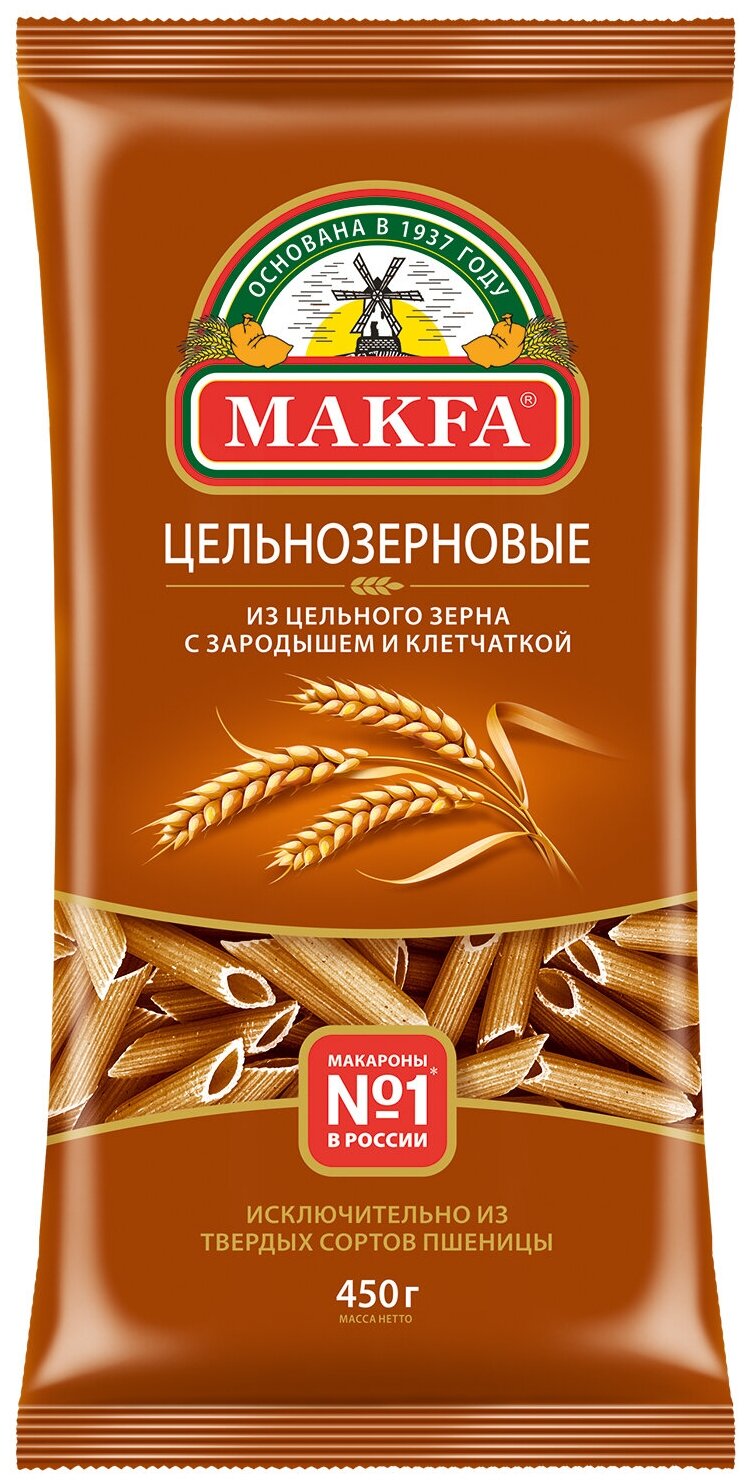 Макароны Makfa Перья цельнозерновые 450г из серии Фитнес производятся из цельносмолотой муки твердых сортов пшеницы и чистой воды. При варке они сохраняют не только свою форму, но и полезные свойства цельного зерна. В отличие от классической пасты, такие макароны содержат в разы больше растительного белка, клетчатки (пищевых волокон), а также необходимых организму витаминов, микро- и макроэлементов. Это качественный продукт для спортивного, диетического и здорового питания, который отлично сочетается с легкими соусами, мясом, птицей, морепродуктами и овощами. Чтобы получить правильную текстуру al dente, такие макароны следует варить в кипящей подсоленной воде в течение 7-9 минут.