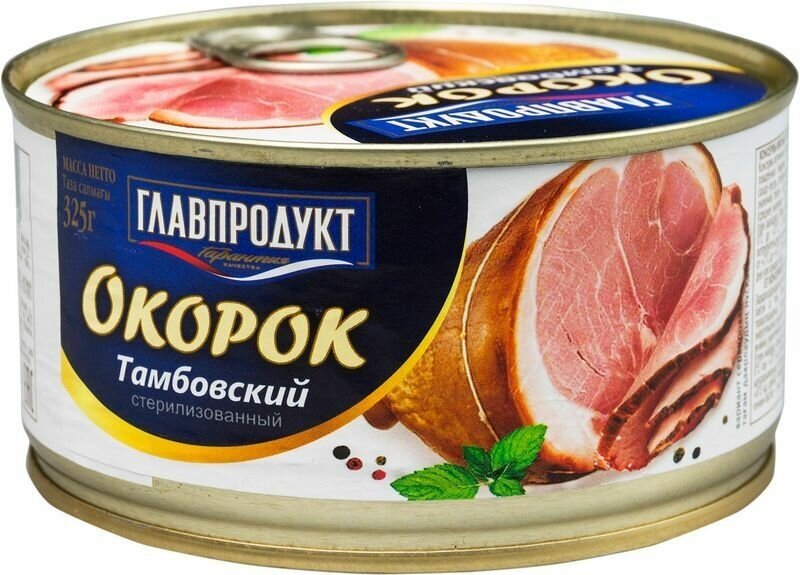 Окорок Главпродукт Тамбовский 325г - это сочное и нежное свиное филе, приготовленное в собственном соку со специями. Оно покрыто небольшим слоем желе, которое можно снять или расплавить вместе с мясом на сковороде для получения аппетитного соуса. Это универсальный, готовый к употреблению продукт поможет вам быстро и без лишних хлопот приготовить полноценный обед или ужин (вам останется только разогреть его и добавить гарнир). Также его можно использовать для приготовления сытных бутербродов, салатов, закусок и перекусов. Упакован в жестяную банку с ключом на крышке.