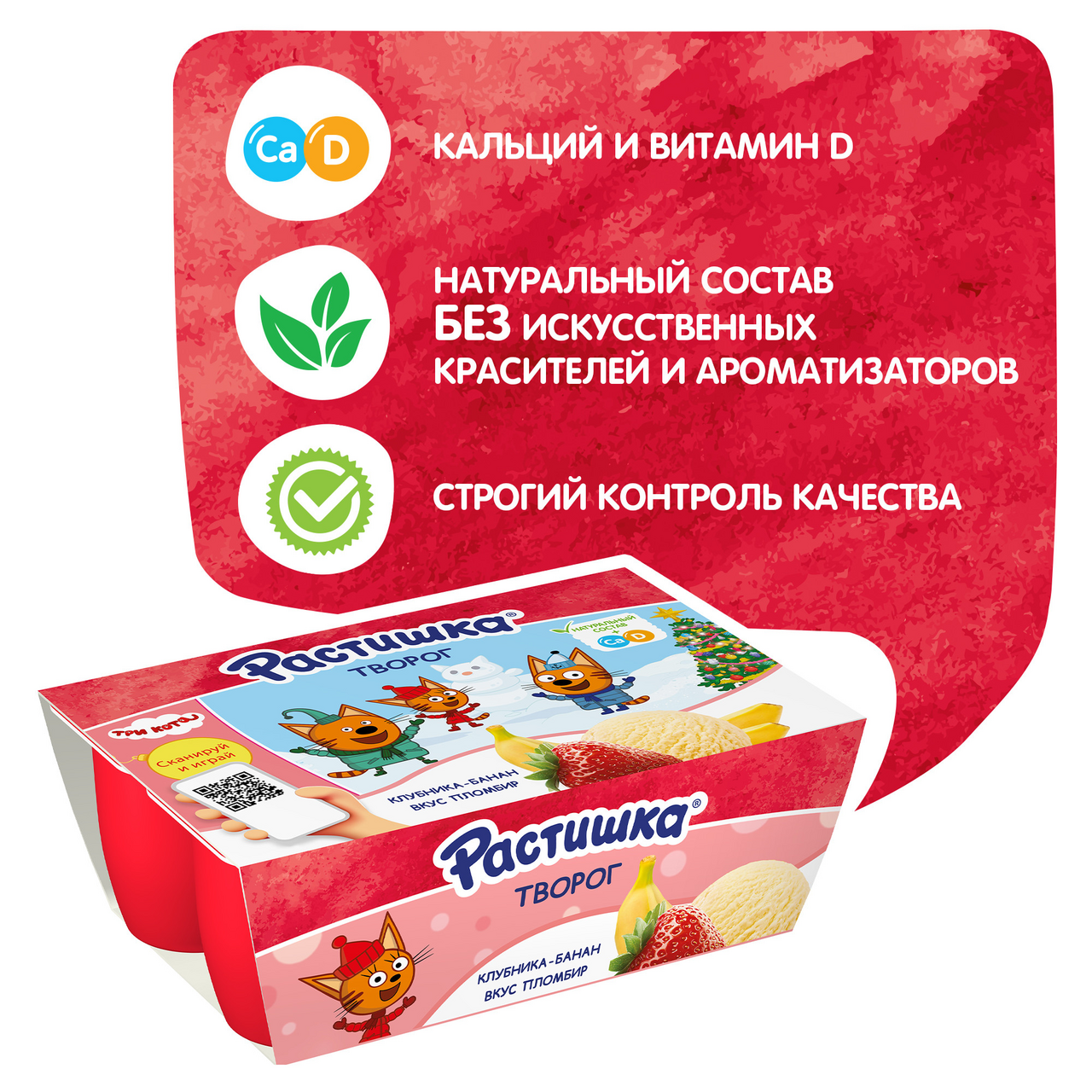 Творог детский Растишка Клубника-банан и Пломбир 3.5% 6шт*45г Danone