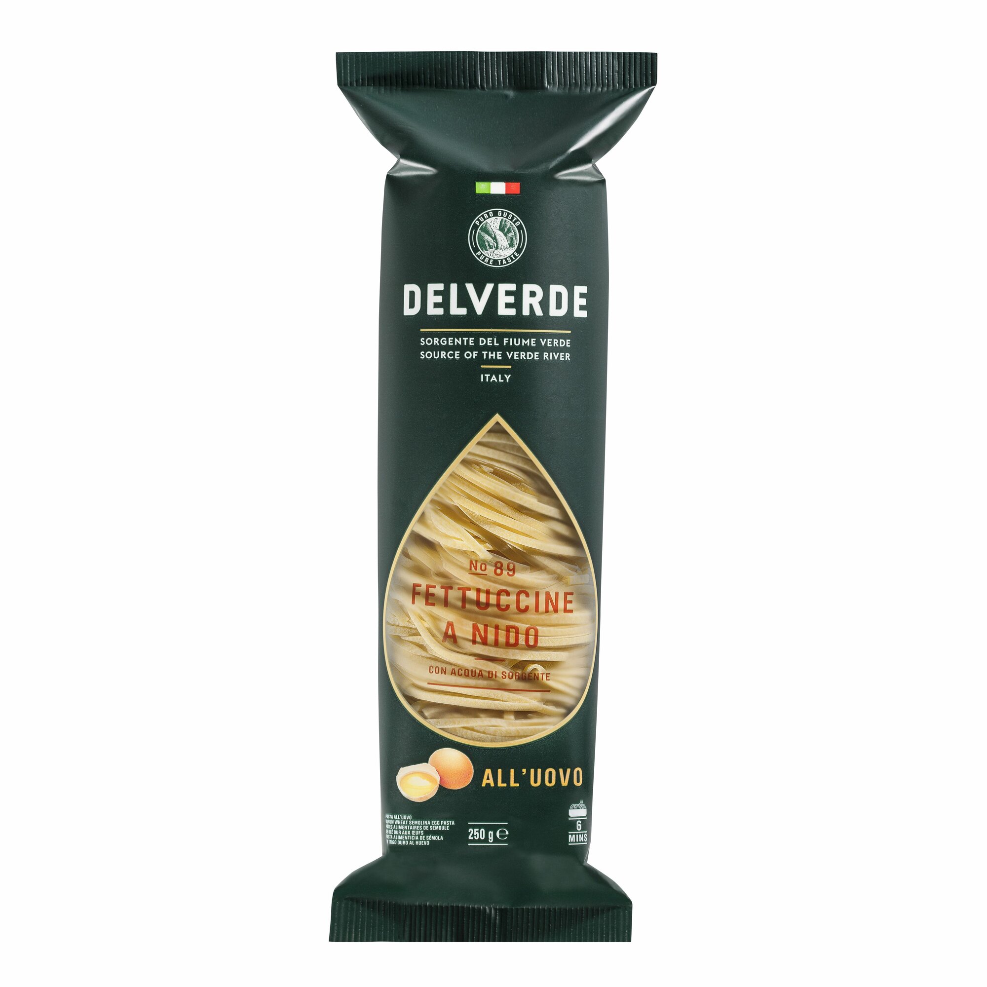 Макароны Delverde Fettuccine all'Uovo A Nido №89 250г приготовлены из лучших зерен твердых сортов пшеницы, кристально чистой воды и свежайших яиц. Холодная от природы, родниковая вода из национального парка Майелла в итальянском регионе Абруццо помогает сохранить уникальный вкус пшеницы. Благодаря старинному способу приготовления пасты с помощью бронзовой пресс-формы поверхность макаронных изделий получается шершавой, и за счет этого они лучше удерживают соус. Сушка при низких температурах сохраняет полезные свойства пшеничного зерна. Чтобы получить идеальный вкус al dente, феттучини рекомендуется варить 6 минут. Производитель предлагает готовить этот вид пасты с телятиной и нежным грибным соусом.