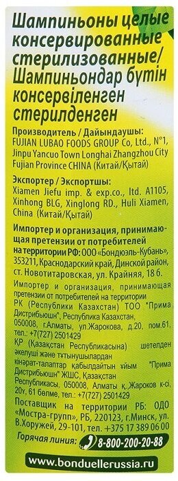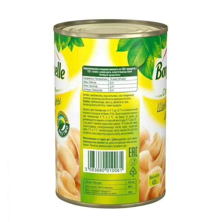 | Состав | шампиньоны, вода питьевая, соль поваренная пищевая, регулятор кислотности |