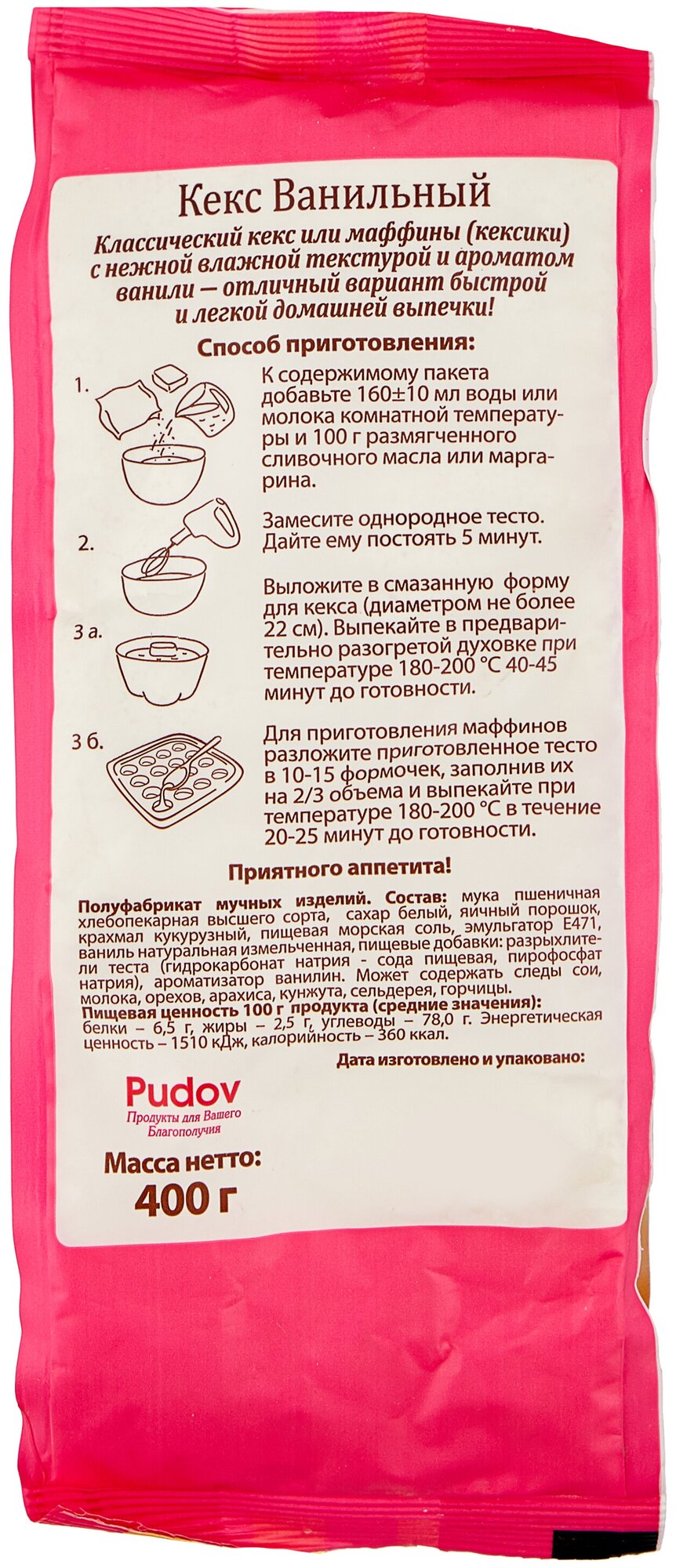Смесь для выпечки С.Пудовъ Кекс ванильный 400г Хлебзернопродукт