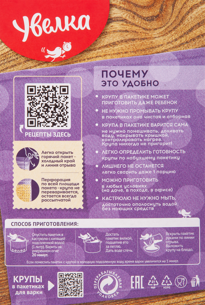| Тип пакетика | Варочный |