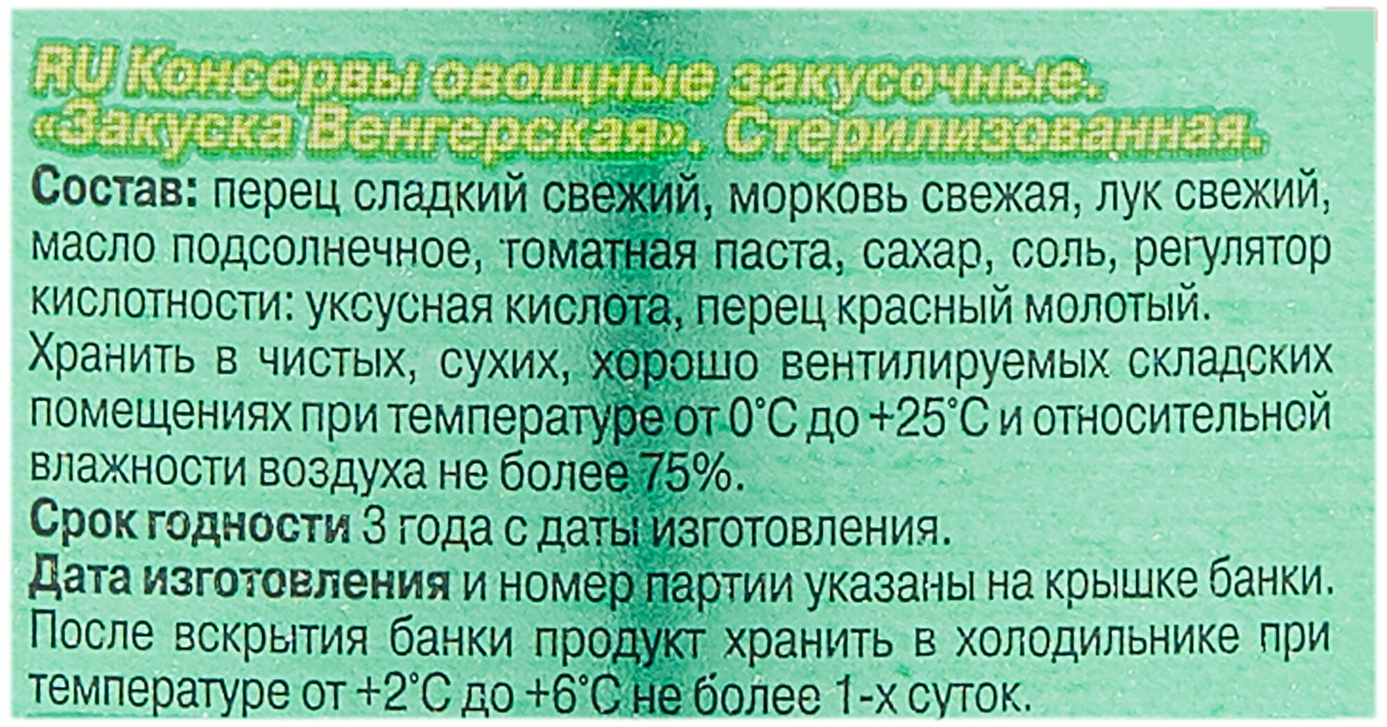Закусочка Дядя Ваня венгерская 460г Консервное предприятие Русское поле - Албаши