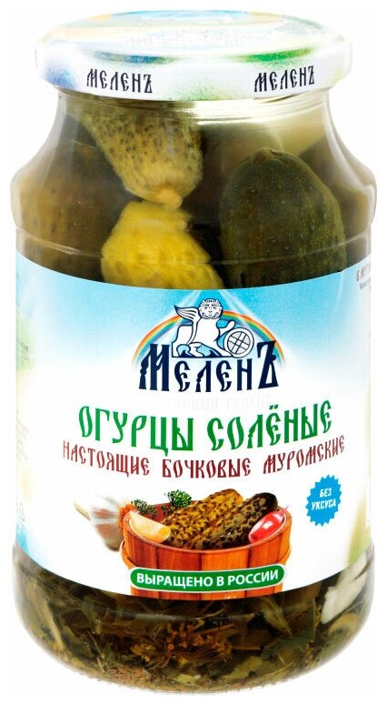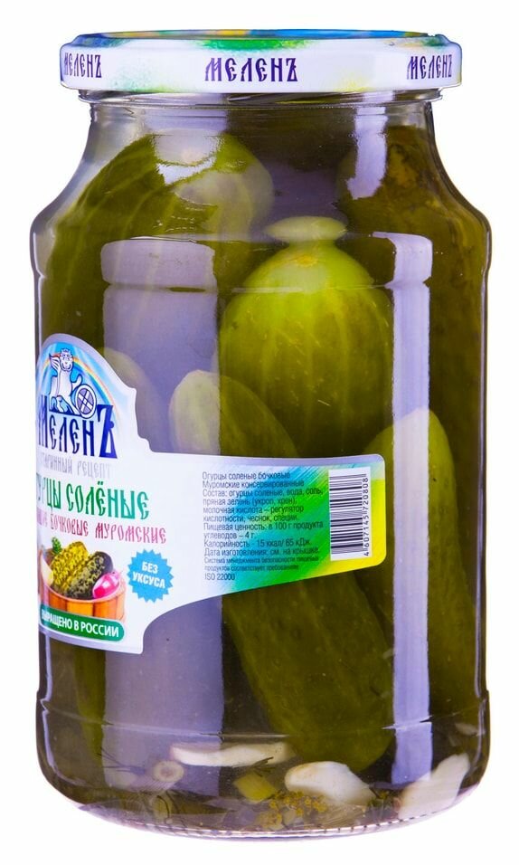Огурцы Меленъ Соленые бочковые муромские 900г производятся по старинному русскому рецепту без уксуса и фасуются в банки прямо в бочковом рассоле. Как и полагается, в них были добавлены лишь чеснок, укроп и специи. Такие огурчики - это не только классическая закуска, но и незаменимый ингредиент для множества блюд. Их обязательно добавляют в салат Оливье, винегрет, рассольник, солянку. Подают как гарнир к мясу, используют для сытных бутербродов и даже пиццы. Открытую банку рекомендуется хранить в холодильнике.